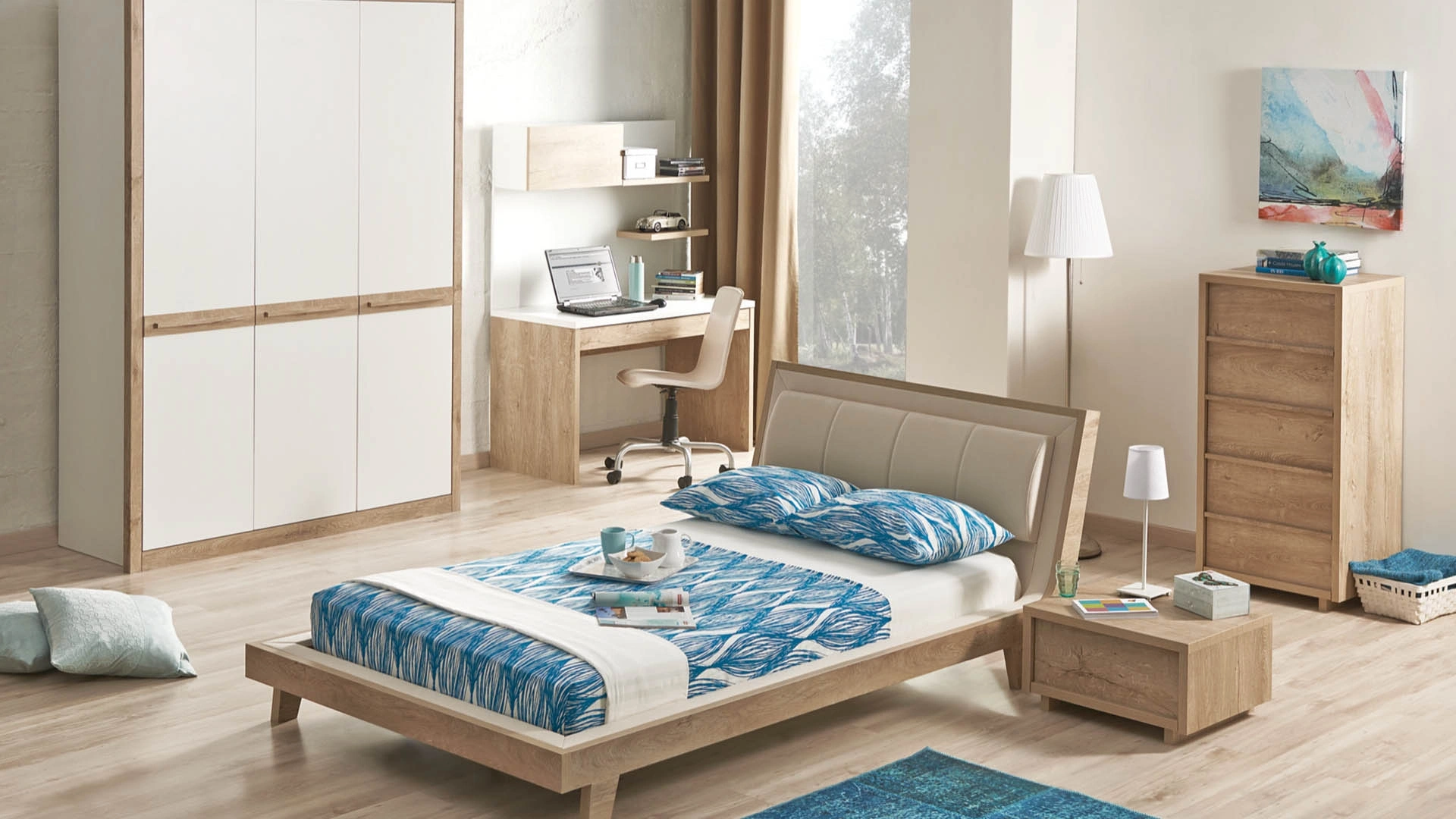 Nigero Genç Odası Takımı, gençlerin ihtiyaçlarına yönelik modern ve şık bir tasarıma sahiptir. Takım, doğal meşe rengi ile zarif bir görünüm sunar. Başlıklı ve bazalı karyola, çalışma masası ve üst modülü, geniş ve dar şifonyer, sürme kapaklı dolap gibi modüllerden oluşur. Çalışma masası geniş bir çalışma alanı sunarken, üst modülü ekstra depolama imkanı sağlar. Geniş ve dar şifonyerler, kıyafetler ve kişisel eşyalar için bolca depolama alanı sunar. Sürme kapaklı dolap, geniş iç hacmi ile düzenli bir oda sağlar. Modüler dolap sistemi, kullanıcının ihtiyaçlarına göre şekillendirilebilen ve ek modüllerle genişletilebilen esnek bir depolama çözümü sunar. Yüksek kaliteli malzemelerle üretilen Nigero Genç Odası Takımı, estetik ve fonksiyonelliği bir araya getirerek gençlerin odalarını hem şık hem de kullanışlı hale getirir.