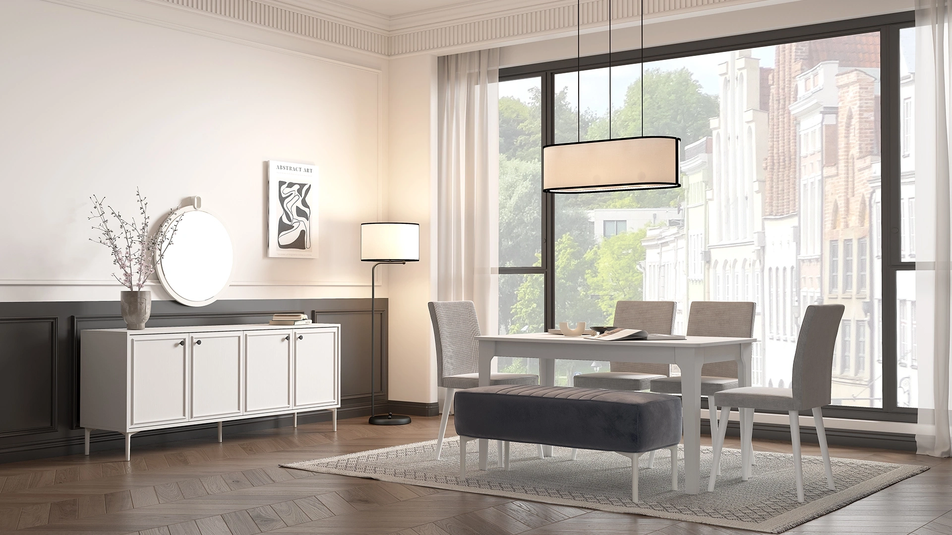 Noira Bench, hem dekoratif hem de fonksiyonel bir kullanım sunar. Açılır ve sabit masa arasına girebilen bench modülüyle pratiklik sağlar.