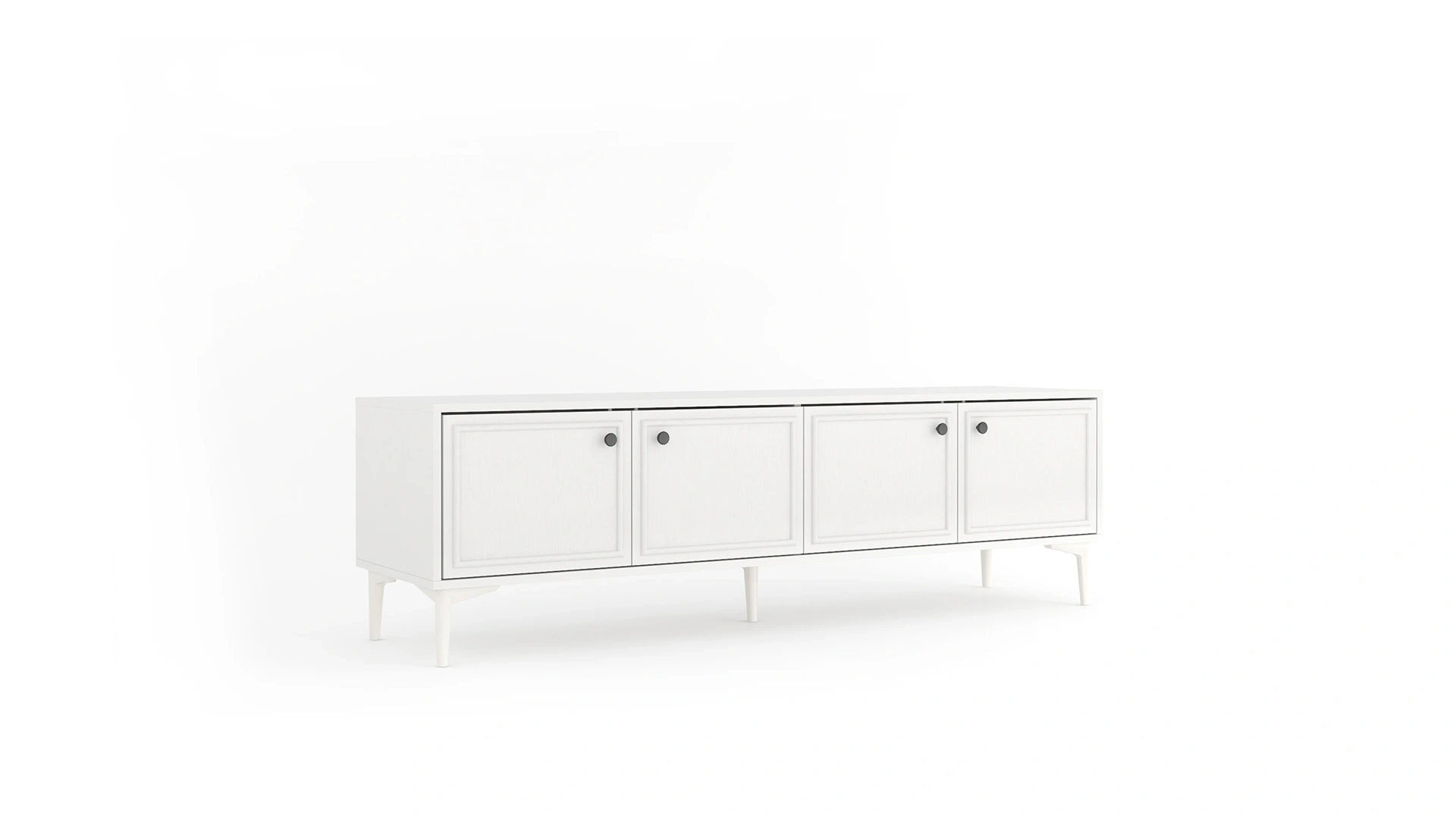 With its trim detailed covers and modern white legs, the 180 cm wide TV base unit carries Noira's aesthetic line.