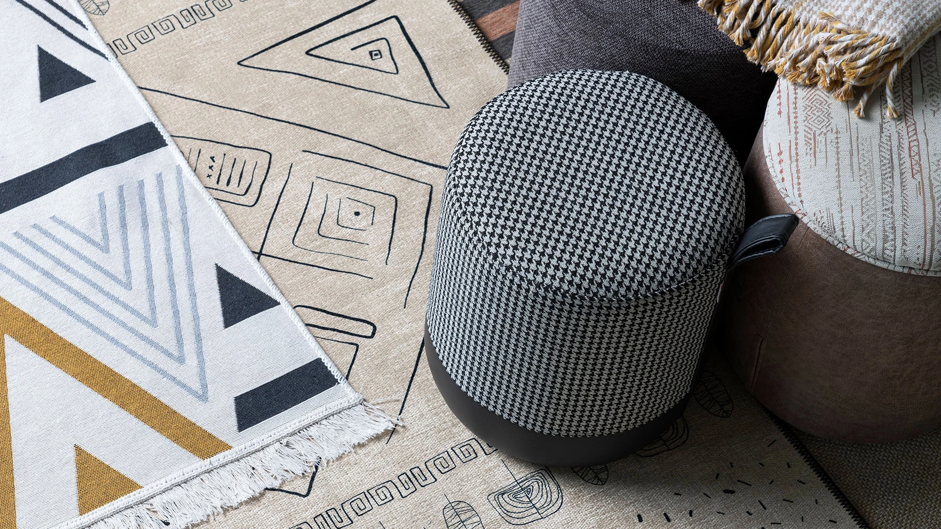 Available in two different pattern options, Oscar Pouf adds a wonderful touch to your home with its black leather handle accent and modern design.