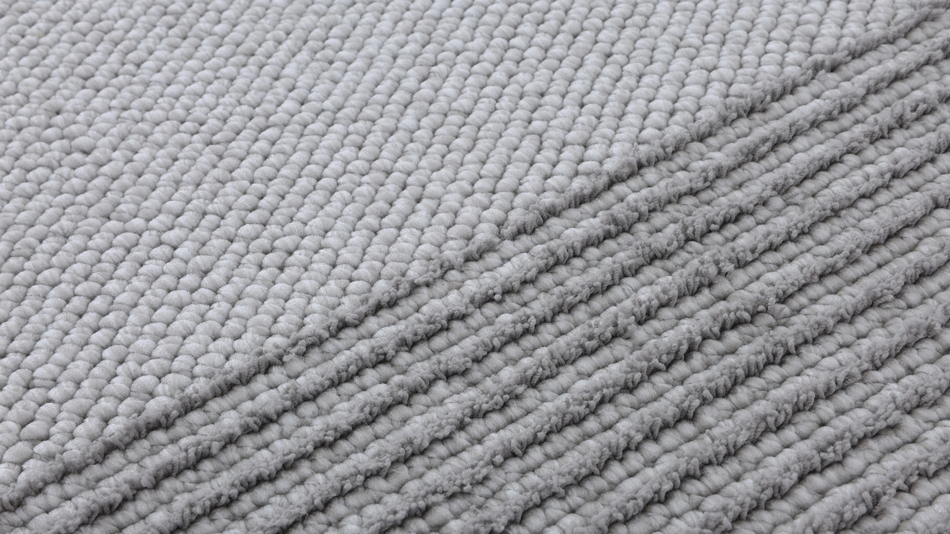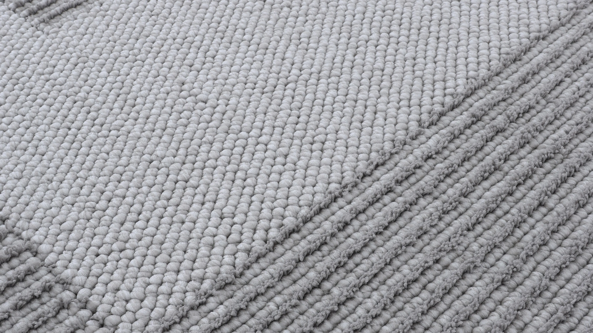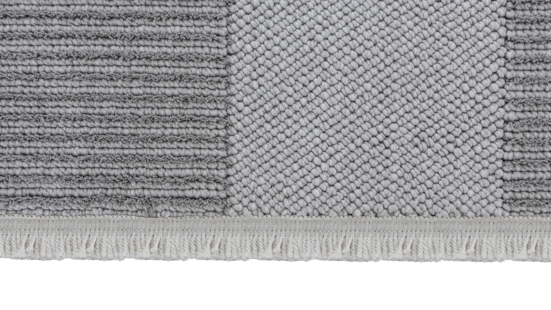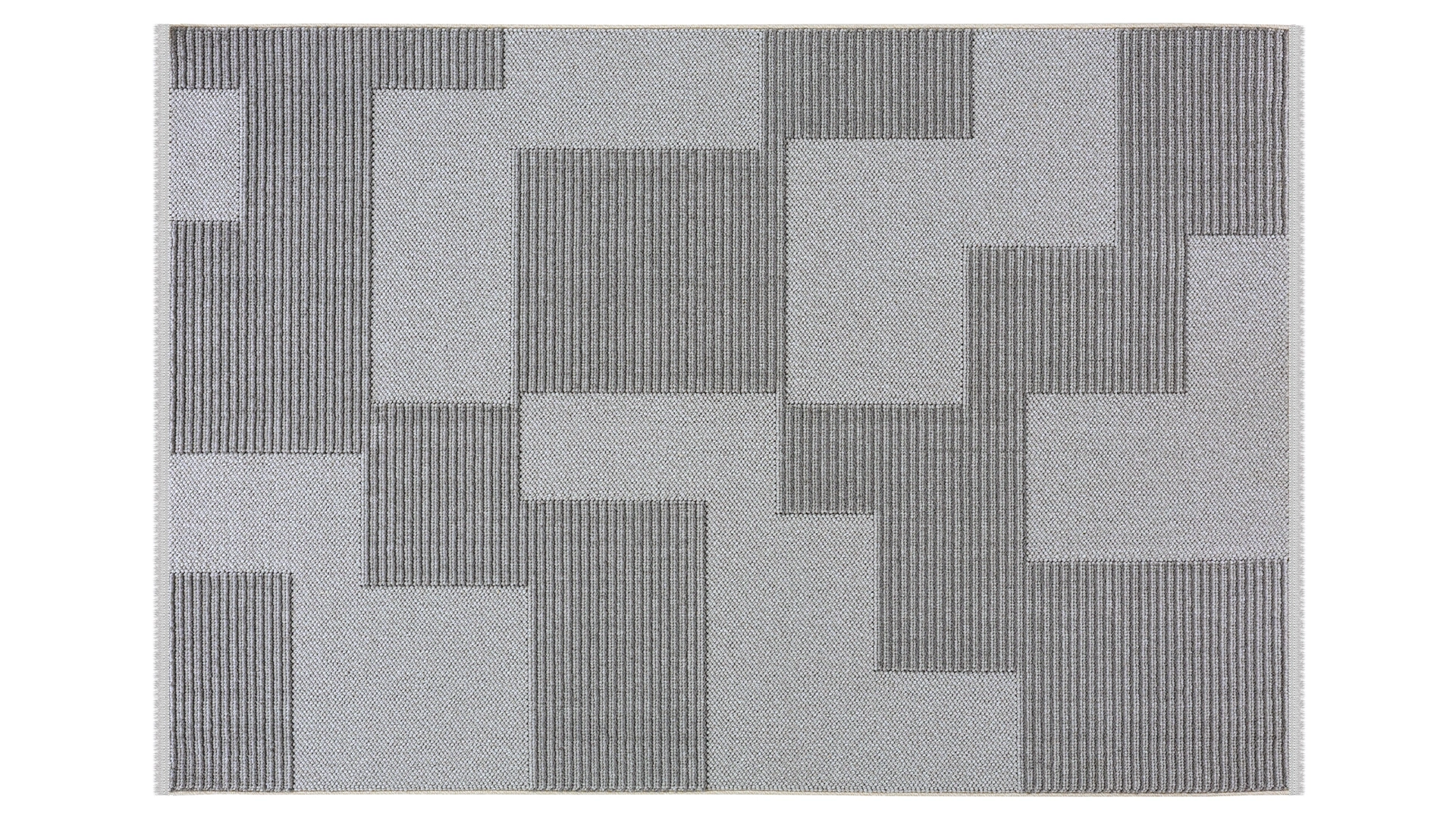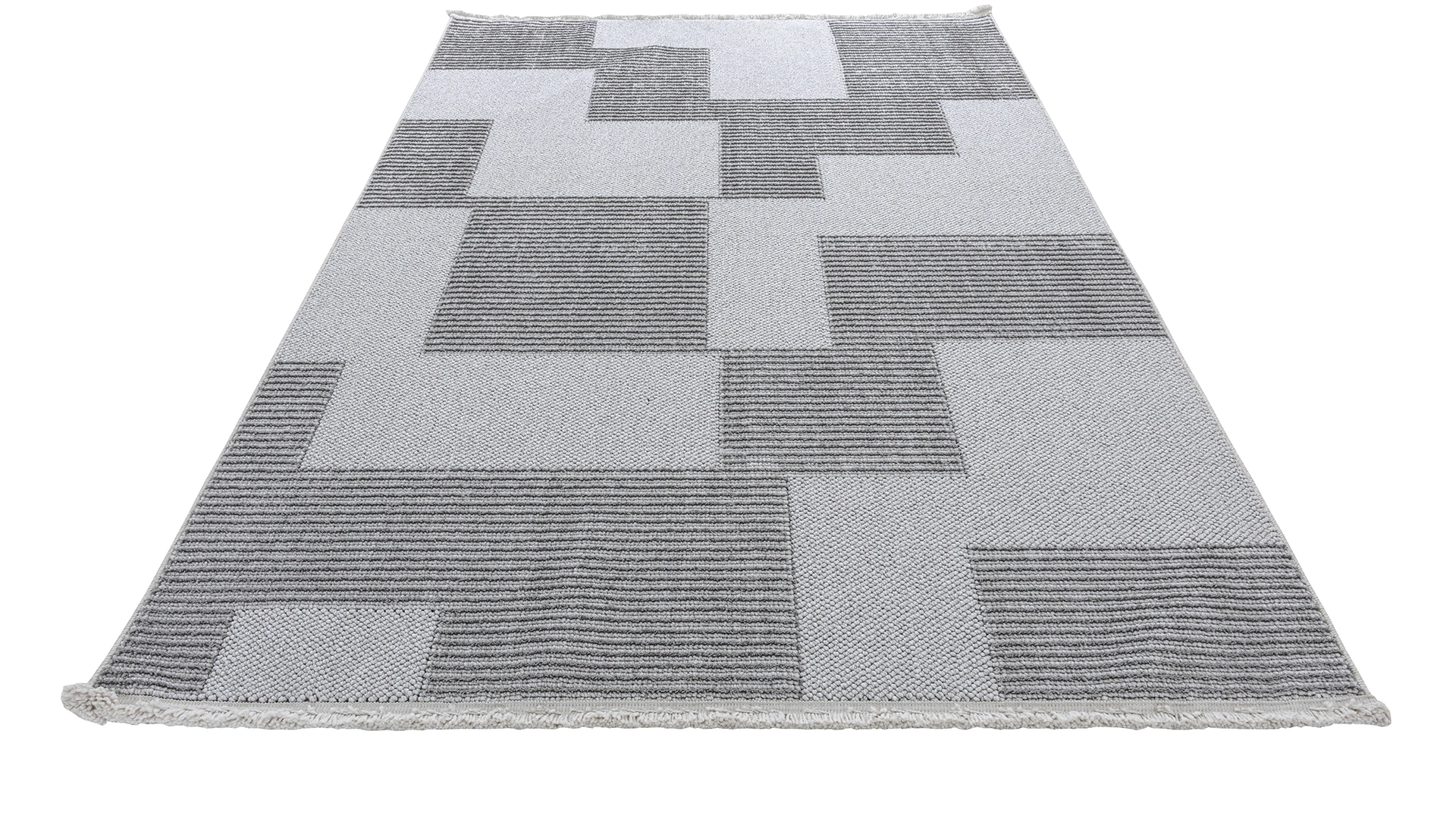 Açık ve koyu gri tonlarının buluştuğu, modern desenli mikropolyester halı.