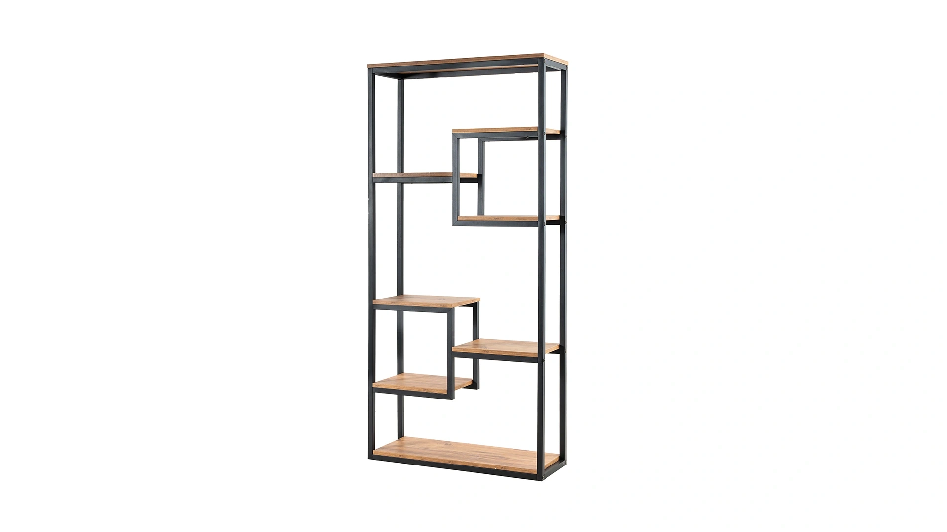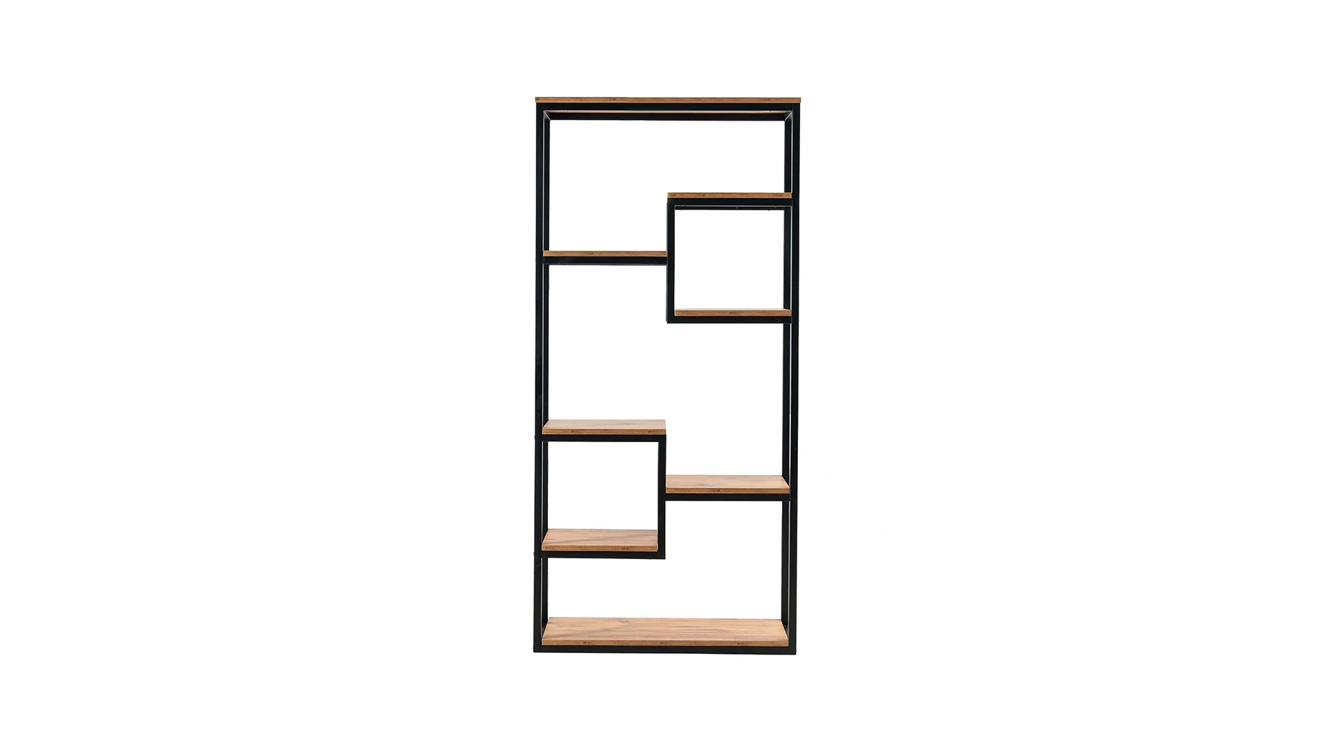 Sanda Kitaplık, zarif metal çerçevesi ve ahşap raflarıyla modern bir dokunuşla bol depolama alanı sunar.