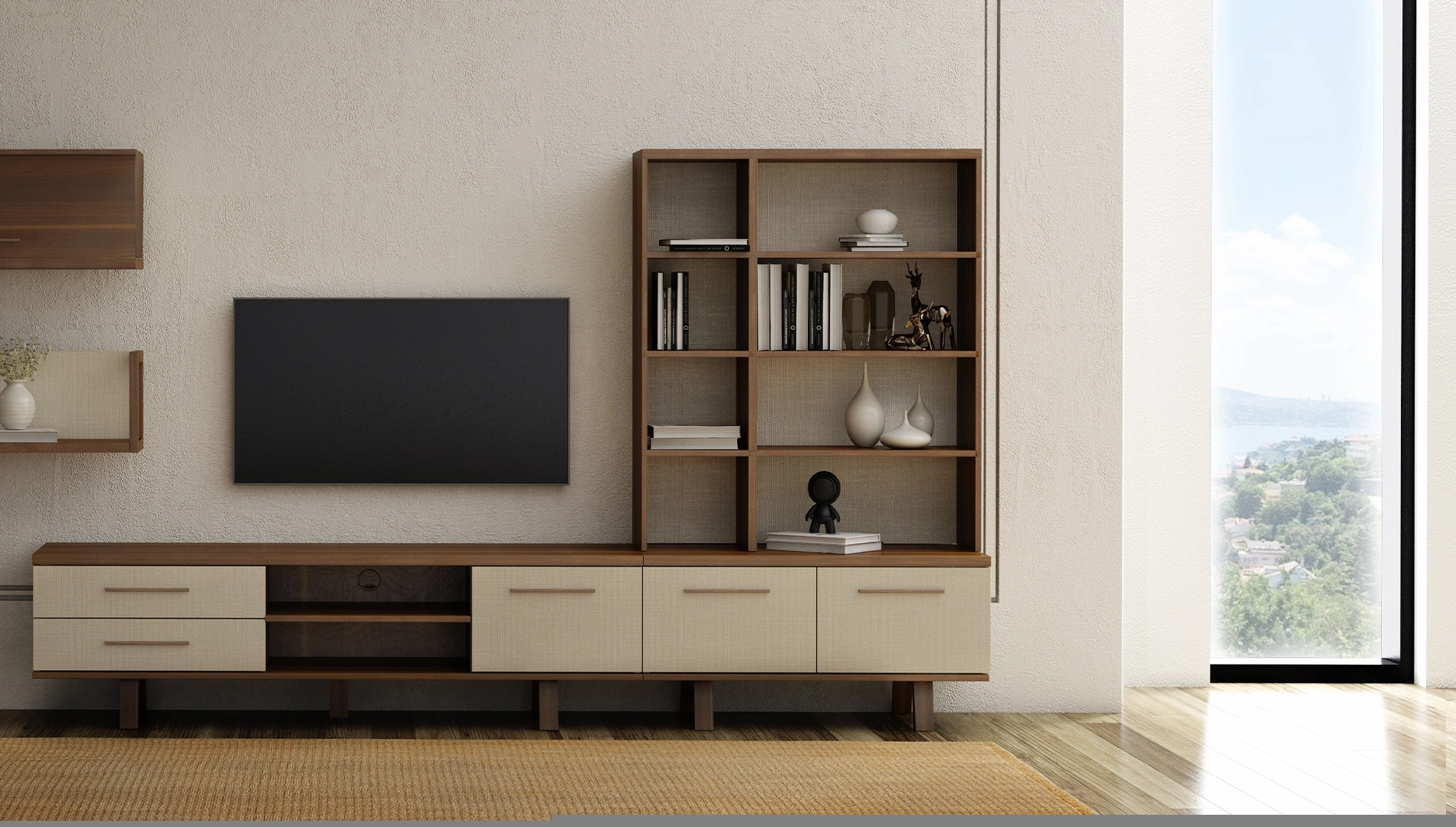 Senta Tv Ünitesi, modern ve şık tasarımı ile evinizin dekorasyonunu tamamlar. Zarif detayları ve modern çizgileri ile dikkat çeker. Endüstriyel ahşap gövdesi ve sağlam yapısı ile uzun ömürlü kullanım sunar. Senta Tv Ünitesi, hem fonksiyonel hem de dekoratif özellikleri ile salonunuzun vazgeçilmez bir parçası olacaktır. Eşyalarınızı saklamak ve sergilemek için ideal bir çözümdür. Geniş depolama alanları ile salonunuzdaki tüm eşyalarınızı rahatlıkla düzenleyebilir ve saklayabilirsiniz. Bu ünite, evinizin genel atmosferine uyum sağlayacak zarif ve işlevsel bir çözüm sunar. Kolay temizlenebilir yüzeyi ile pratik bir kullanım sunar. Modern tasarımı ile salonunuza estetik bir dokunuş katar. Uzun ömürlü kullanım sunar ve salonunuzun dekorasyonuna katkı sağlar.