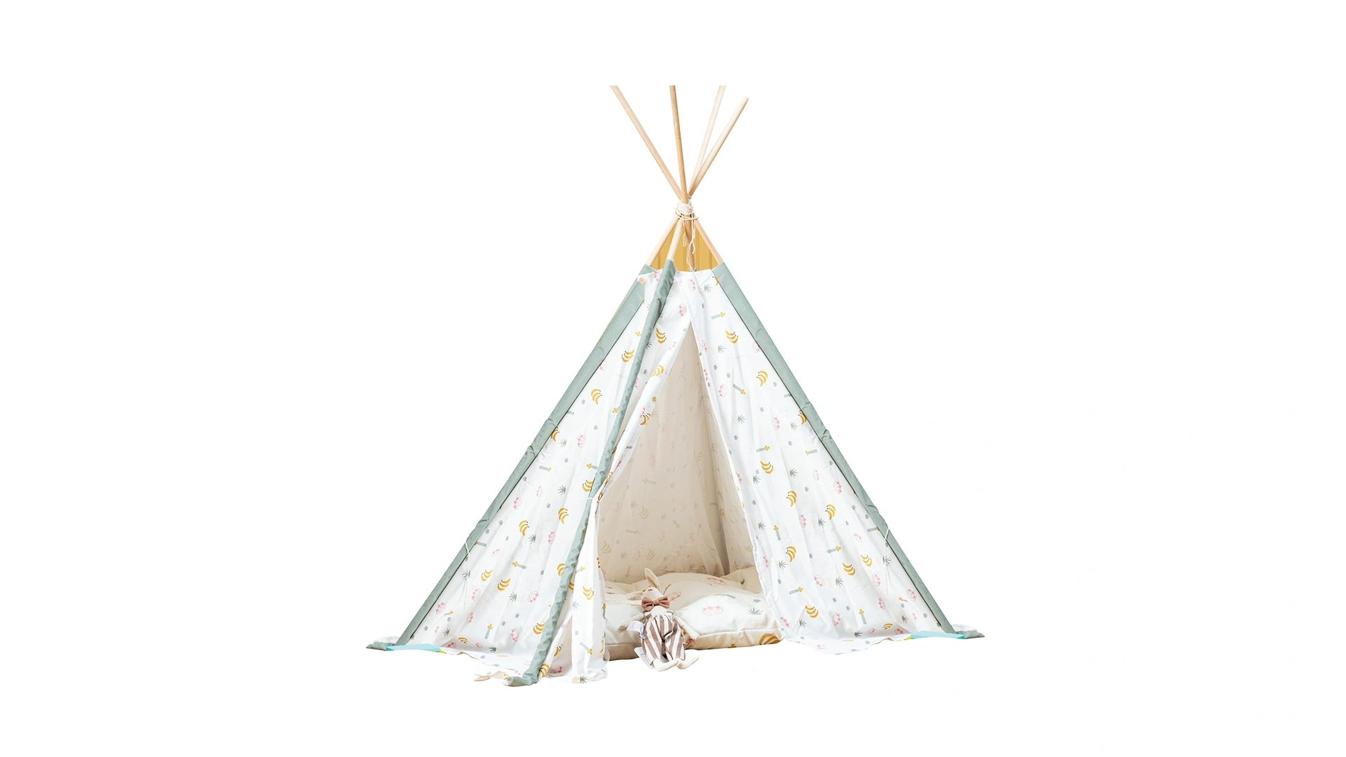 Adding fun to children's rooms with its cute tents and design, Tombo Play Tent draws attention with its natural materials. Tombo Play Tent is produced using 4 wooden slats, 100% cotton fabric and cotton stick tying rope.