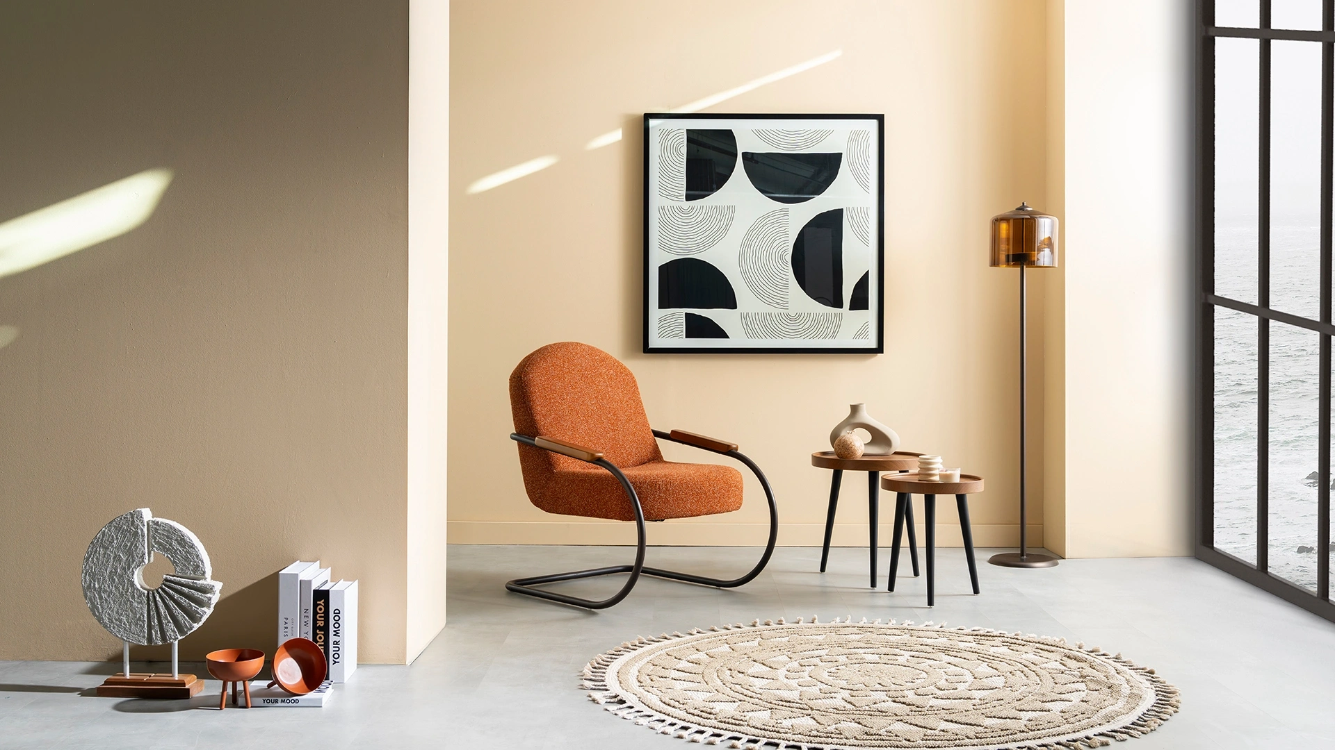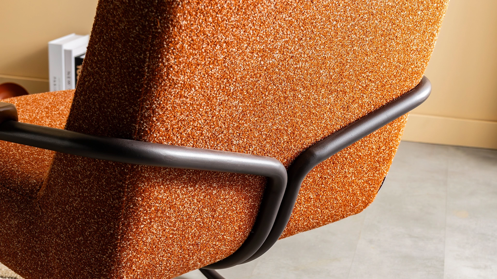 Tune Bergere with metal construction adds elegance and comfort to your life. Feather sponge was used in the upholstery of the Tune Bergere with walnut-coloured solid armrest inserts on its armrests.