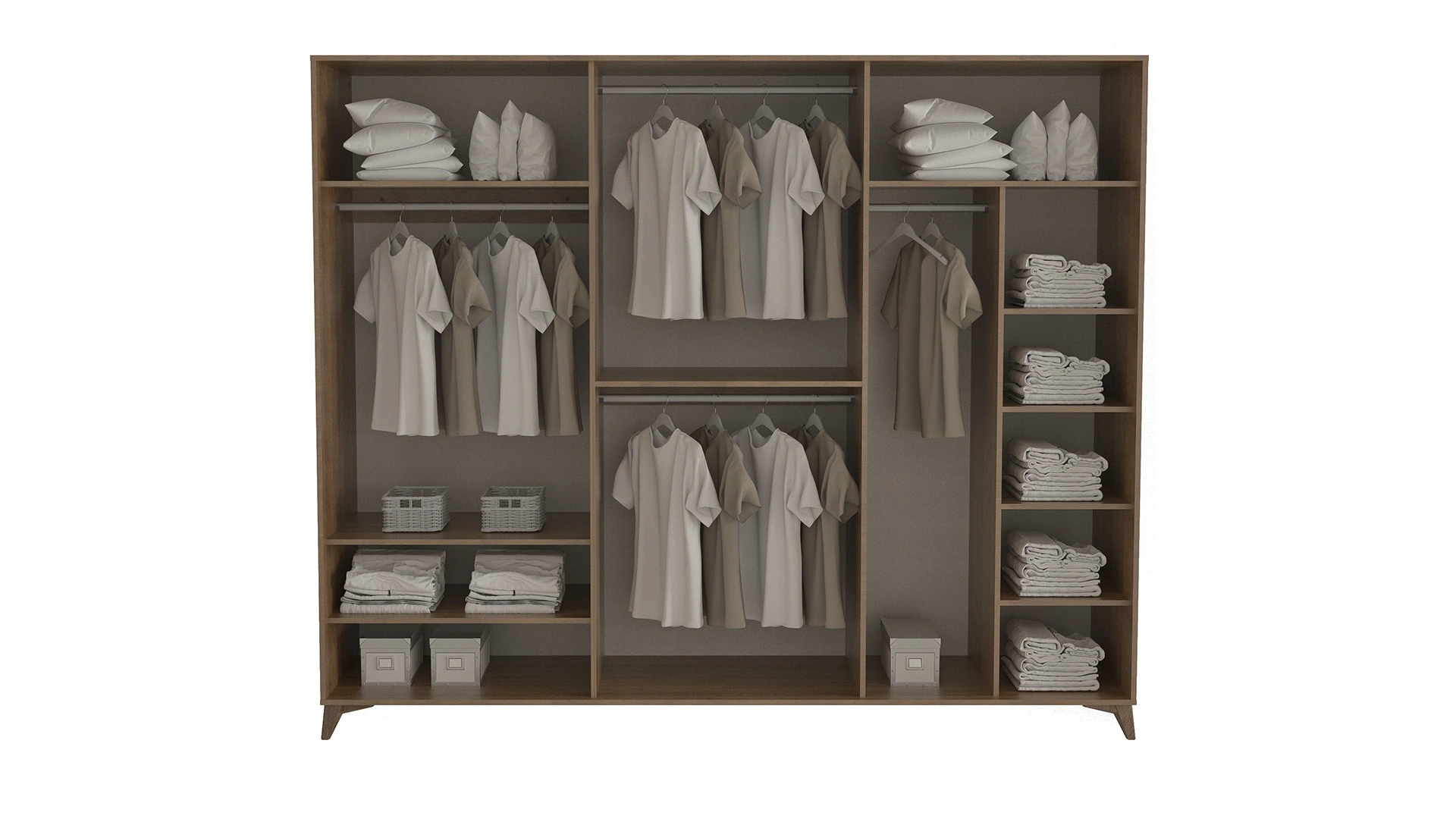 Viena 6 Door Wardrobe impresses with the harmony of natural walnut finish and gold details. While making your bedroom look spacious with its full-length mirror and providing ease of cleaning with its high legs, Viena 6-Door Wardrobe offers practicality and elegance together.