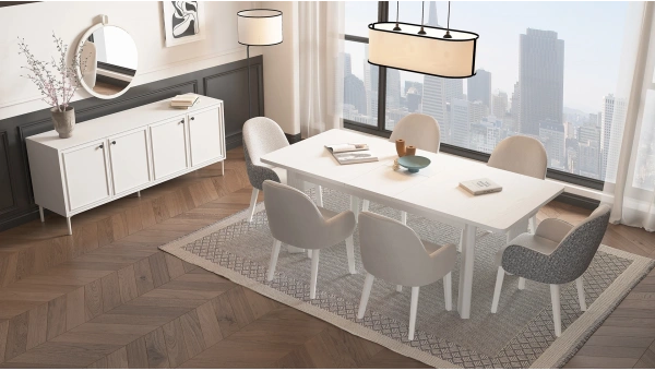 Inspired by nature, Viena Extendable Table is to become an essential piece of your dining room with its minimalist design and walnut finish. Viena Dining Table offers elegance, quality, and comfort together, allowing you to save space with its extendable design.