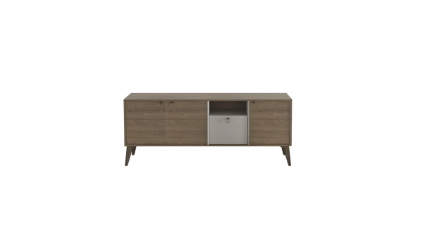 Standing out with its gold handles, asymmetrical design, and minimalist lines, Viena Sideboard brings elegance to your home. Creating an ideal space for your dinnerware and service accessories, Viena Sideboard impresses with the combination of white and natural walnut finish.