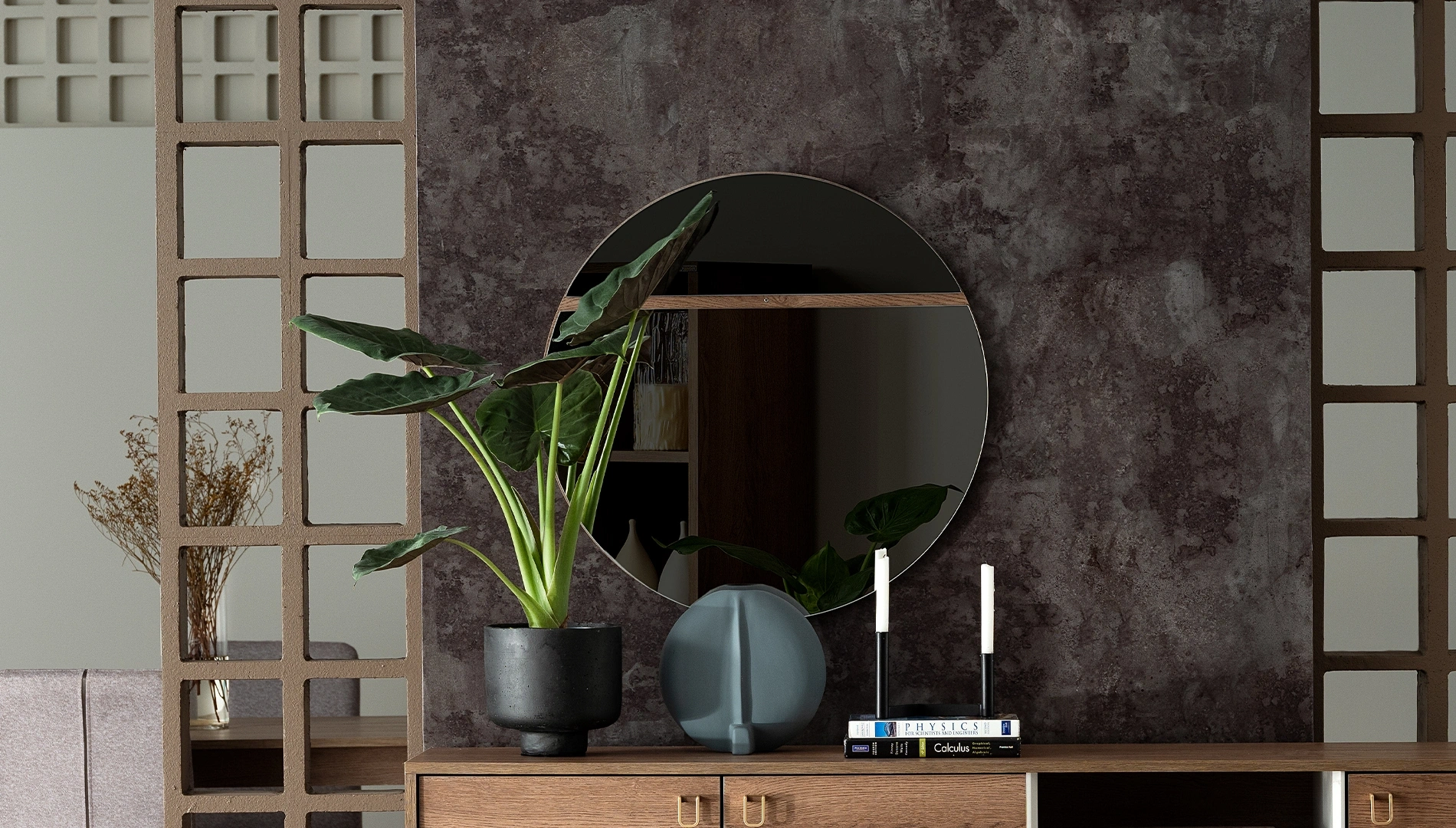 Viena Sideboard Mirror is to become the most stylish complement to your dining room. With its round form, gold details, and minimalist design, Viena Sideboard Mirror gives your home a unique and elegant touch and helps you create a more spacious space.
