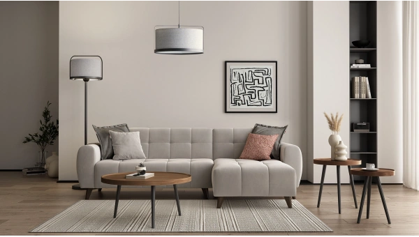 Fedra Köşe Koltuk, kompakt ölçüleriyle küçük alanlarda ferahlık sağlar. Akıllı tasarımıyla hem baza alanı sunar hem de yatak olarak kullanılabilir. Yumuşacık dokusu, zarif çizgileri ve etnik desenli kırlentleriyle yaşam alanınıza sıcaklık ve şıklık katar.
