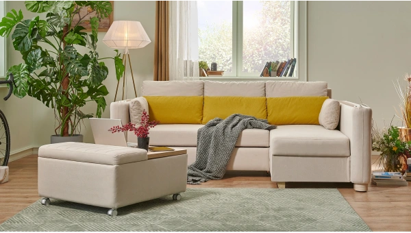 Fedra, modern tasarımı ve yatak mekanizmasıyla çok yönlü konfor ve fonksiyon sunar.