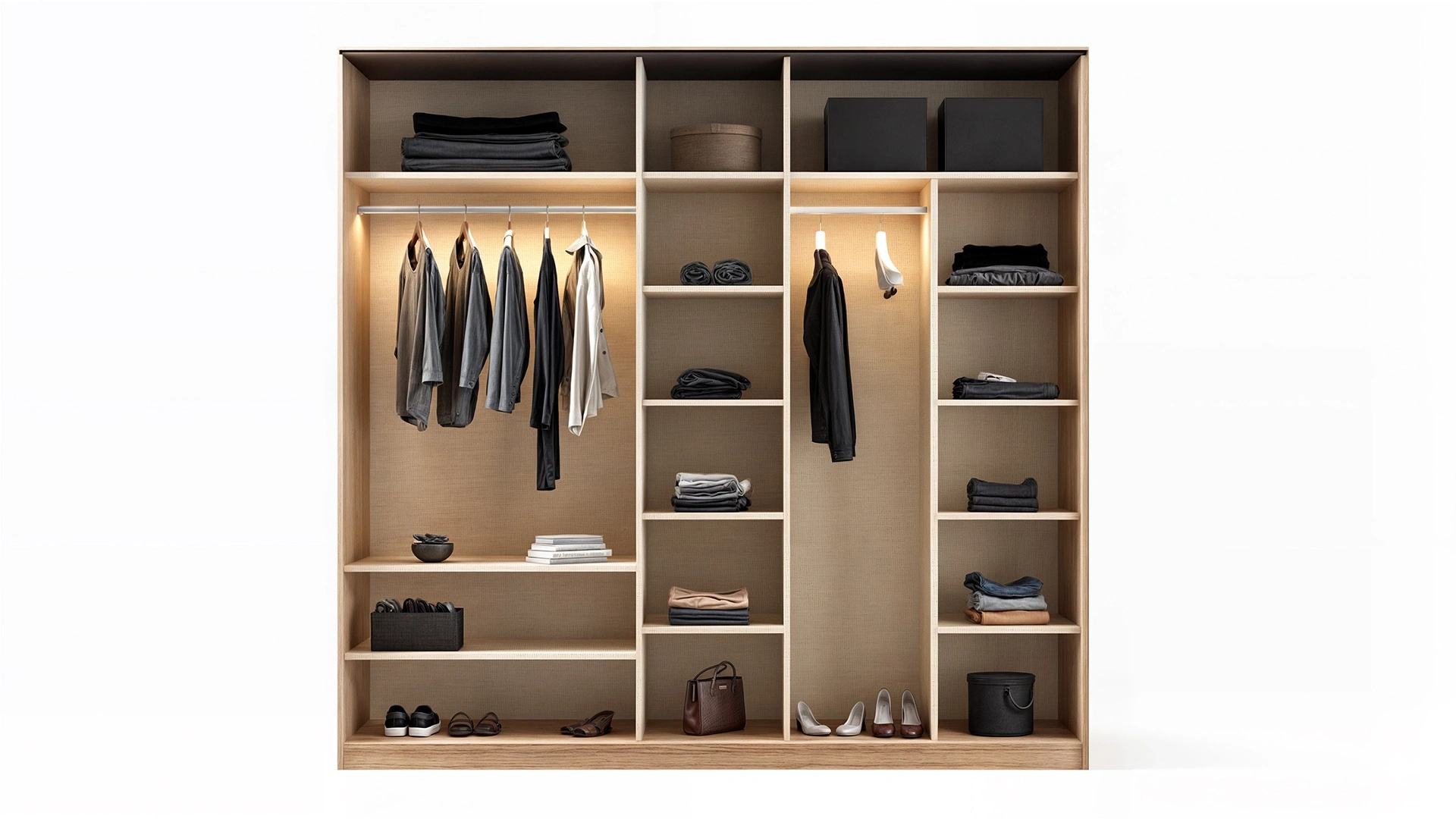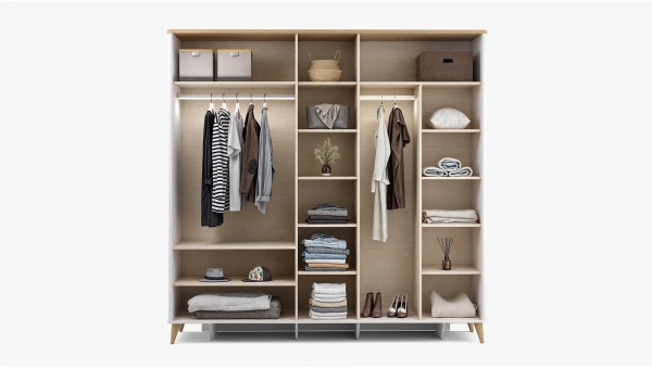 5 kapaklı yapısıyla daha fazla depolama sunan bu modül, iç bölmesindeki raf ve askılık alanlarıyla kullanım kolaylığı sağlar. Grid koleksiyonuna ait tüm gardırop modülleriyle aynı estetik anlayışı taşır.