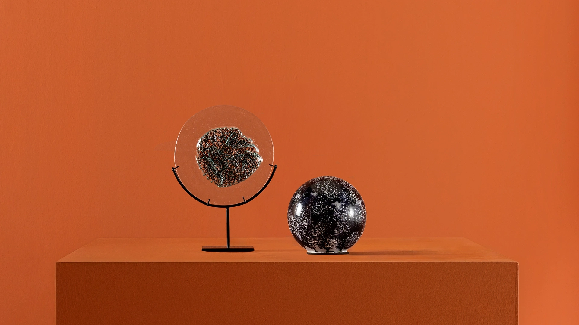 Yumuşak geçişli gri tonlarıyla boyanmış bu cam küre, bulunduğu ortama dingin bir hava katar. Işığa göre değişen renk oyunlarıyla dikkat çeker. Modern ve sade dekorasyonlara uyum sağlar.