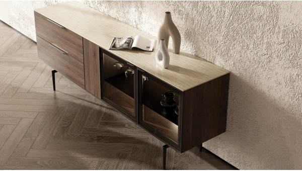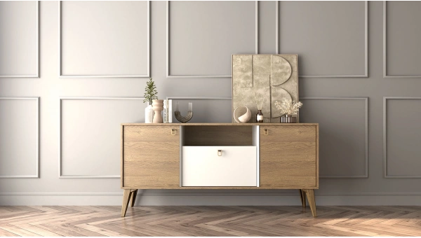Dar ölçüleriyle özellikle sınırlı alanlarda kullanım için geliştirilen bu konsol, depolama ihtiyacını karşılamanın yanı sıra estetik bir alternatif sunar. Modern çizgileriyle koleksiyona uyum sağlar.