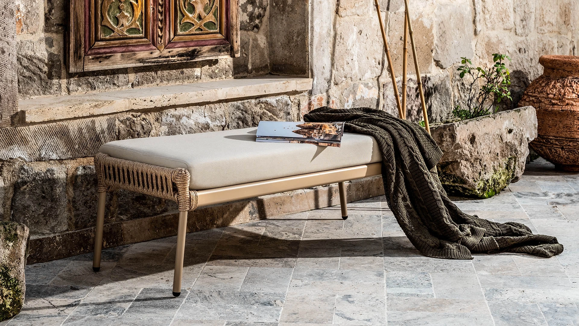 Özel el işçiliği ile göz kamaştıran Wintech Rattan iple örülmüş Hera İpli Bench aynı zamanda suya, rüzgara ve güneşe dayanıklı bir yapıya sahip. Kalabalık buluşmaların oturma alanlarını genişleten Hera İpli Bench, estetik ve fonksiyonu bir arada sunuyor. Alüminyum iskelet yapısı, benchin sağlamlığını ve dayanıklılığını artırırken, hafifliğiyle taşıma ve yer değiştirme kolaylığı sağlıyor. Evinizin konforunu bahçe ve balkonlarınızda yakalamak Hera İpli Bench ile çok kolay.