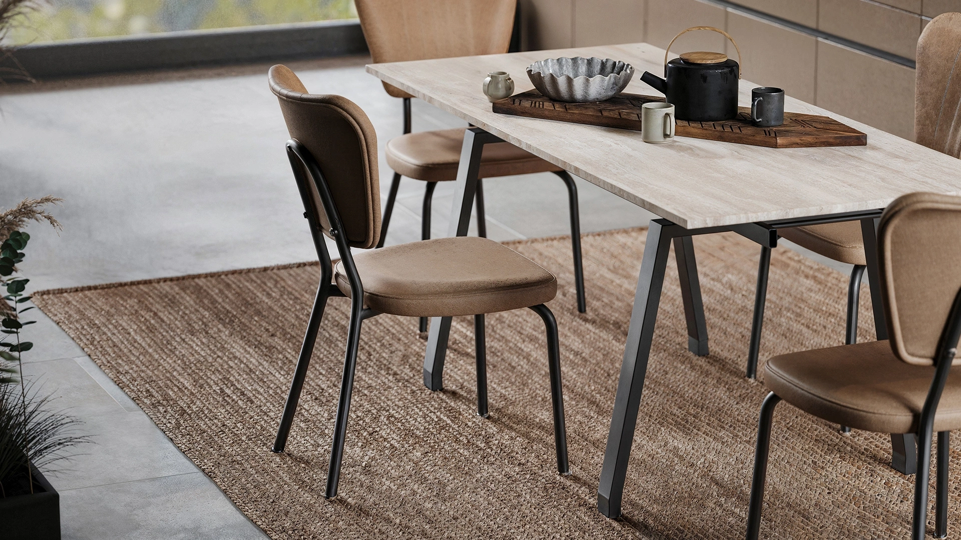 Zarif tasarımıyla masayla uyumlu bir bütünlük sunar. Metal ayak yapısı dayanıklılık sağlarken, modern çizgileriyle mutfak dekorasyonuna şık bir dokunuş katar. Hem günlük kullanım hem de misafir ağırlamalarında konforlu bir oturum sunar.