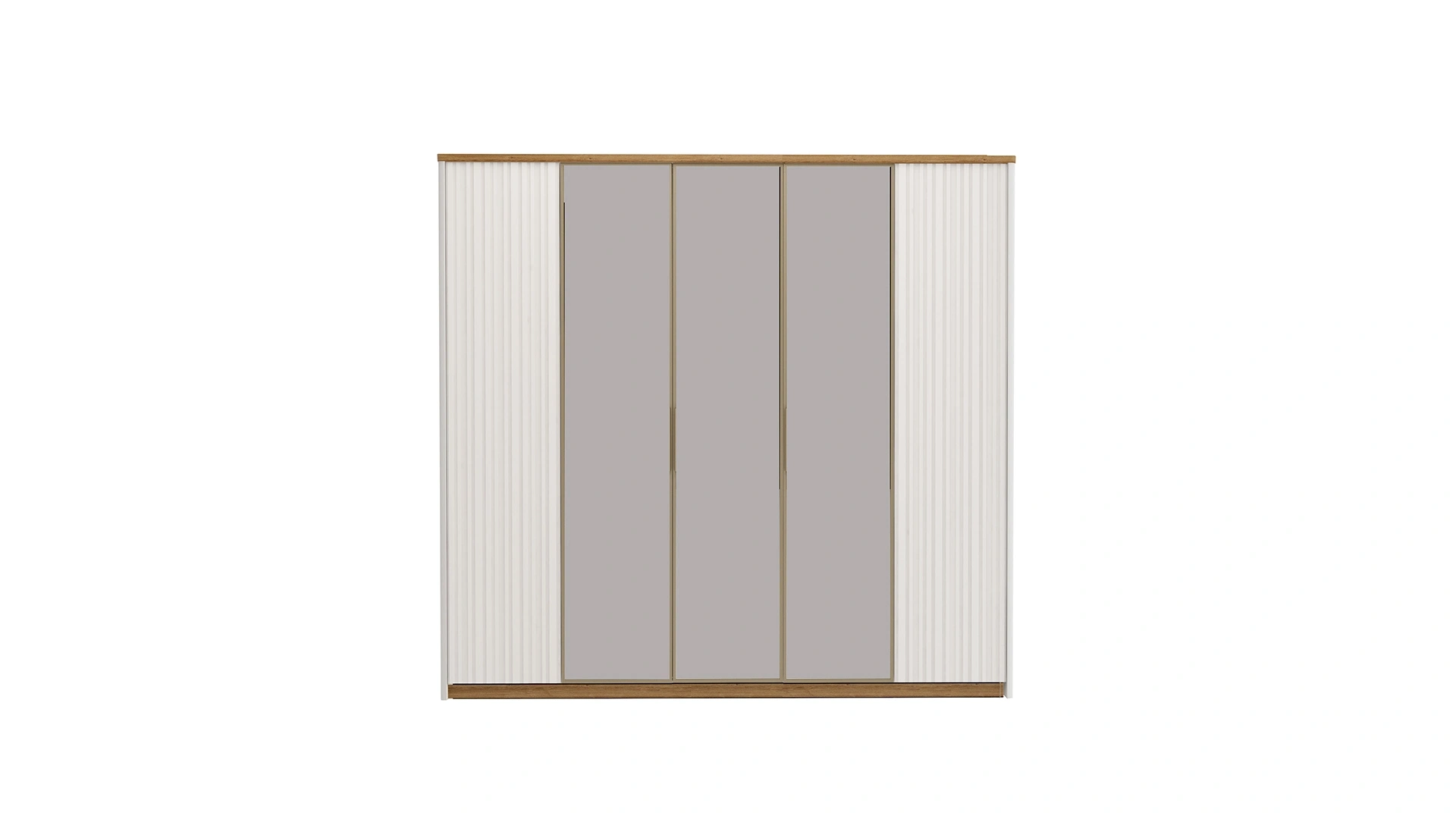 Lionte Beş Kapaklı Dolap, geniş iç hacmiyle giysileriniz için harika bir alan sağlıyor. Aynalı kapaklarıyla pratik kullanım sağlayan Lionte Beş Kapaklı Dolap, ceviz ve gri-beyazın zarafetini evinize taşıyor.
