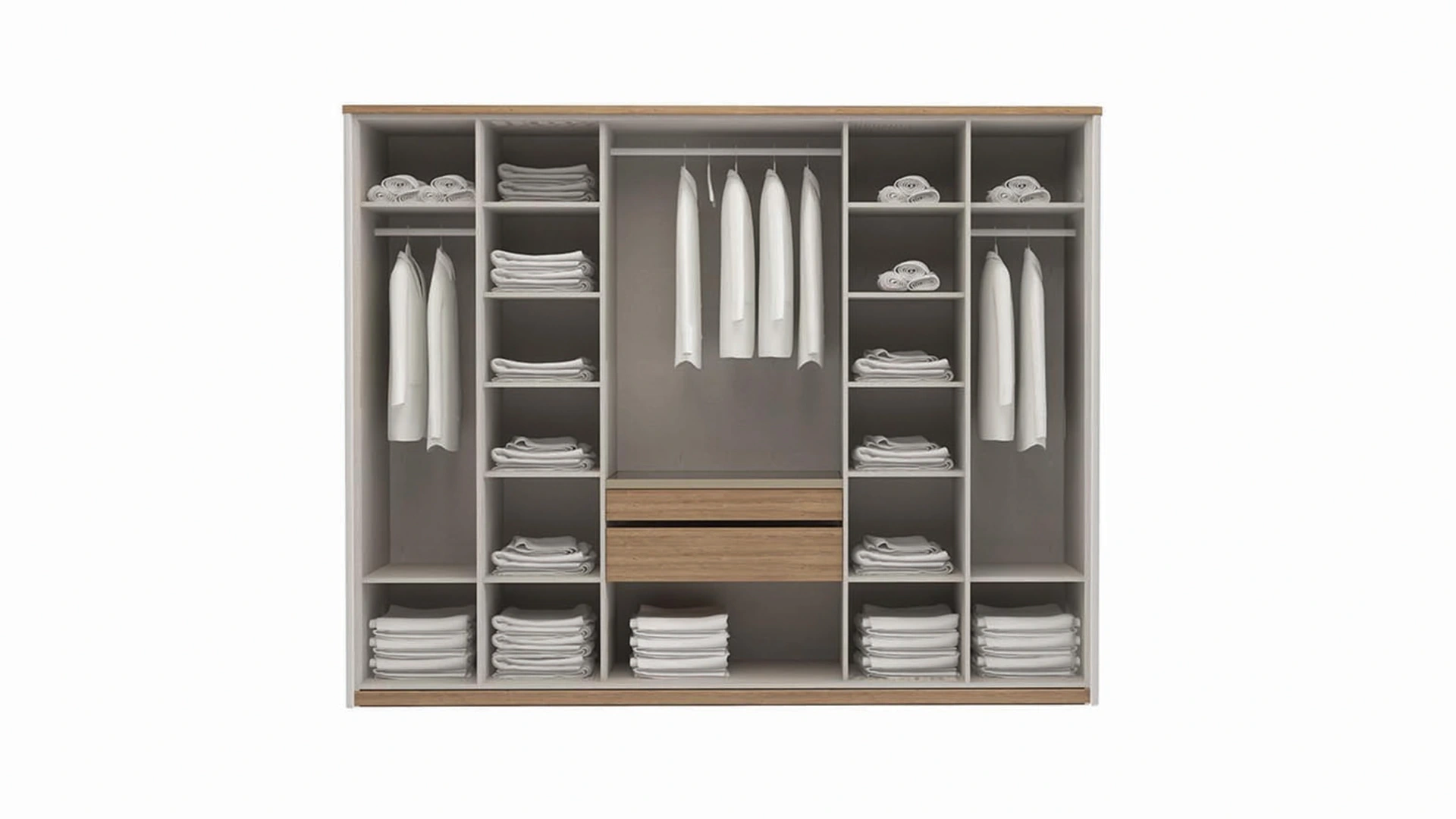 Lionte dolap, modern tasarımı ve işlevsel özellikleriyle öne çıkar. Cam, ayna ve gri tonlamalı beyaz membran kapak seçenekleriyle kullanıcıya esneklik sağlar. Dolabın iç kısmında ledli askı boruları ve mücevherlik çekmecesi yer alır. Kullanıcı taleplerine göre yapılan yeniliklerle estetik ve kullanım kolaylığı bir araya getirilmiştir.