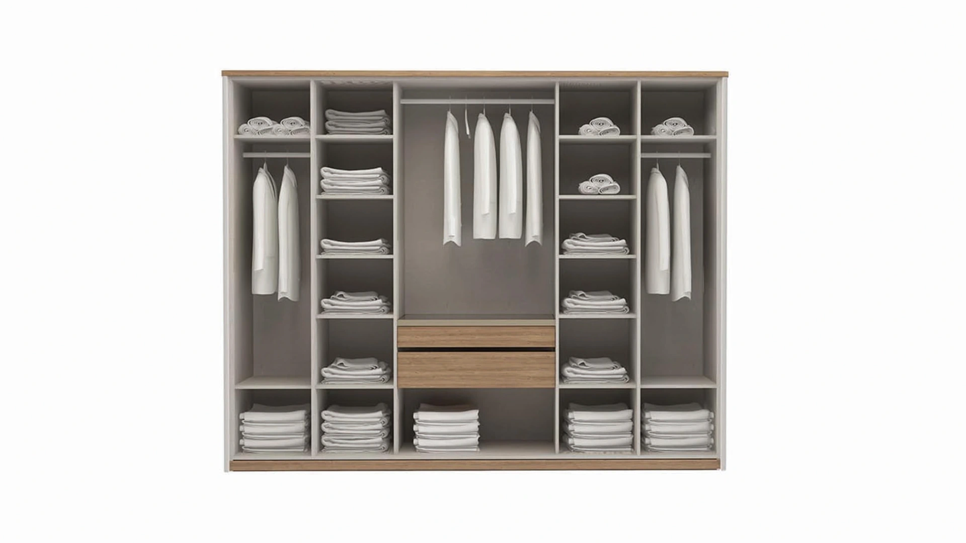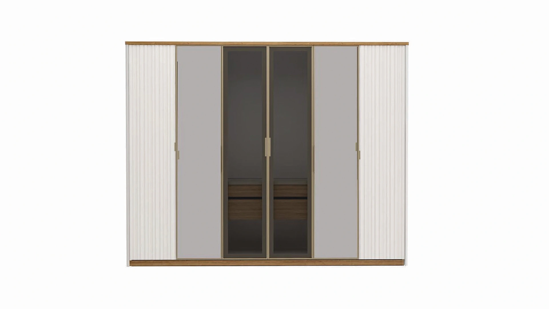Lionte dolap, modern tasarımı ve işlevsel özellikleriyle öne çıkar. Cam, ayna ve gri tonlamalı beyaz membran kapak seçenekleriyle kullanıcıya esneklik sağlar. Dolabın iç kısmında ledli askı boruları ve mücevherlik çekmecesi yer alır. Kullanıcı taleplerine göre yapılan yeniliklerle estetik ve kullanım kolaylığı bir araya getirilmiştir.