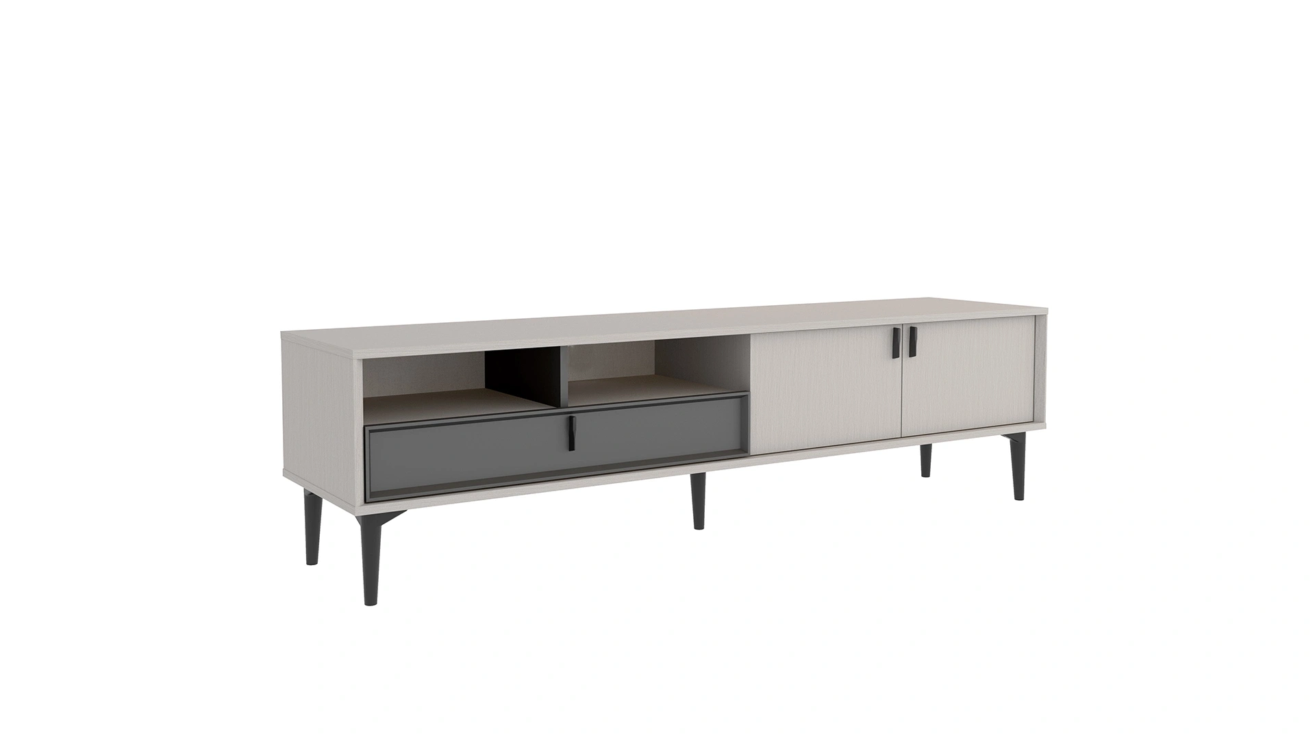 Geniş ölçüsüyle büyük ekranlar için ideal, güçlü ve şık bir TV ünitesidir.