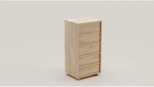 Nigero Dar Şifonyer, çekmeceli yapısıyla eşyalarınızı rahatça organize etmenizi sağlarken, meşe rengi ve minimal tasarımıyla şıklığı ve zarafeti yaşamınıza katıyor.