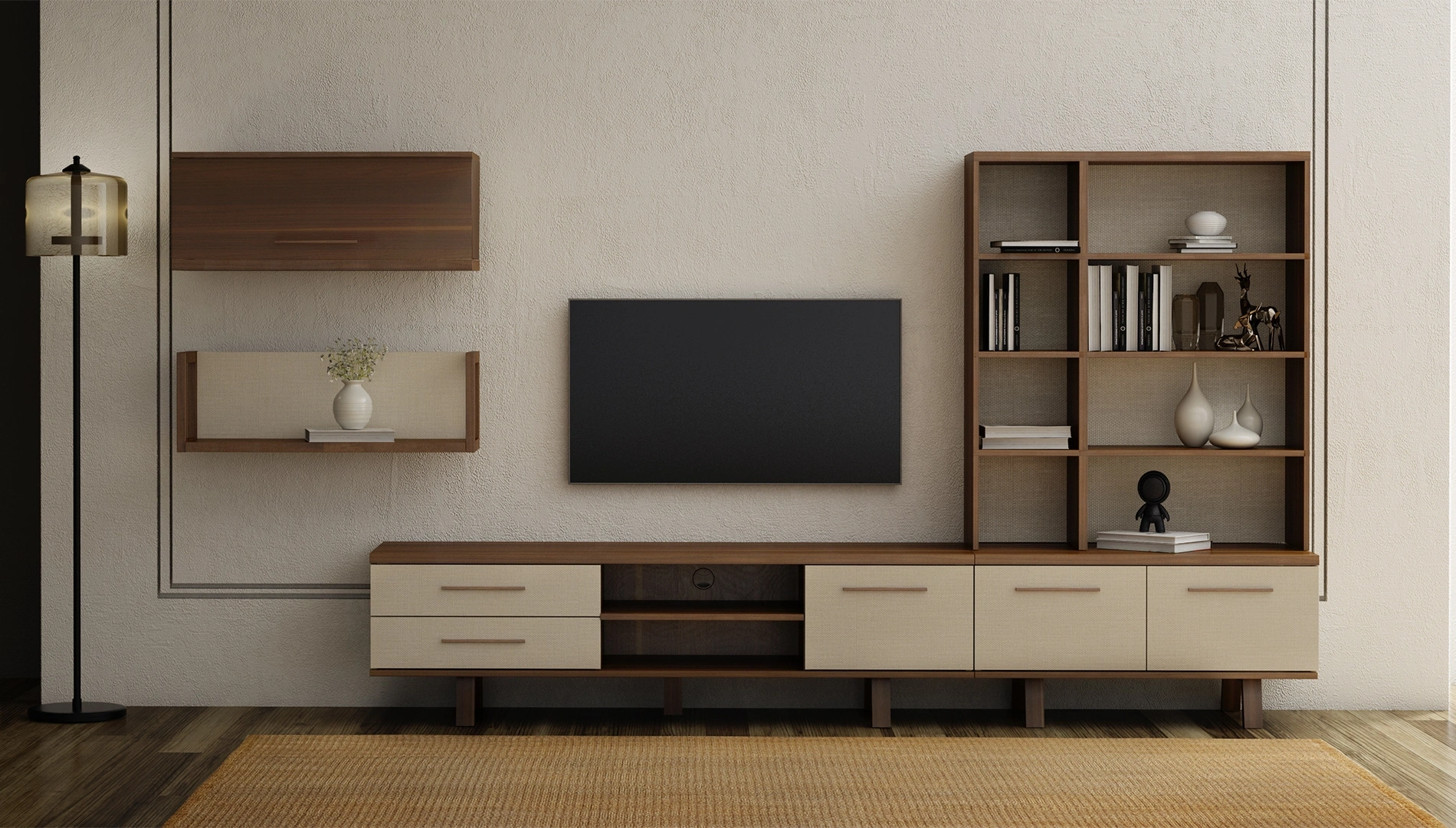 Yüksek standarttaki doğaya zarar vermeyen malzemelerle üretilen Senta Tv Alt Ünite, keten dokulu bej rengi kapakları ve ceviz rengi gövdesiyle evinizin şıklığına şıklık katacak. Yerden yükseltilmiş ayak yapısıyla temizlik kolaylığı sunan Senta Tv Alt Ünite, açık raflarıyla aksesuarlarınızı sergileyebileceğiniz, kapaklı bölmeleriyle de görünmesini istemediğiniz eşyalarınız için ekstra alan sağlıyor.