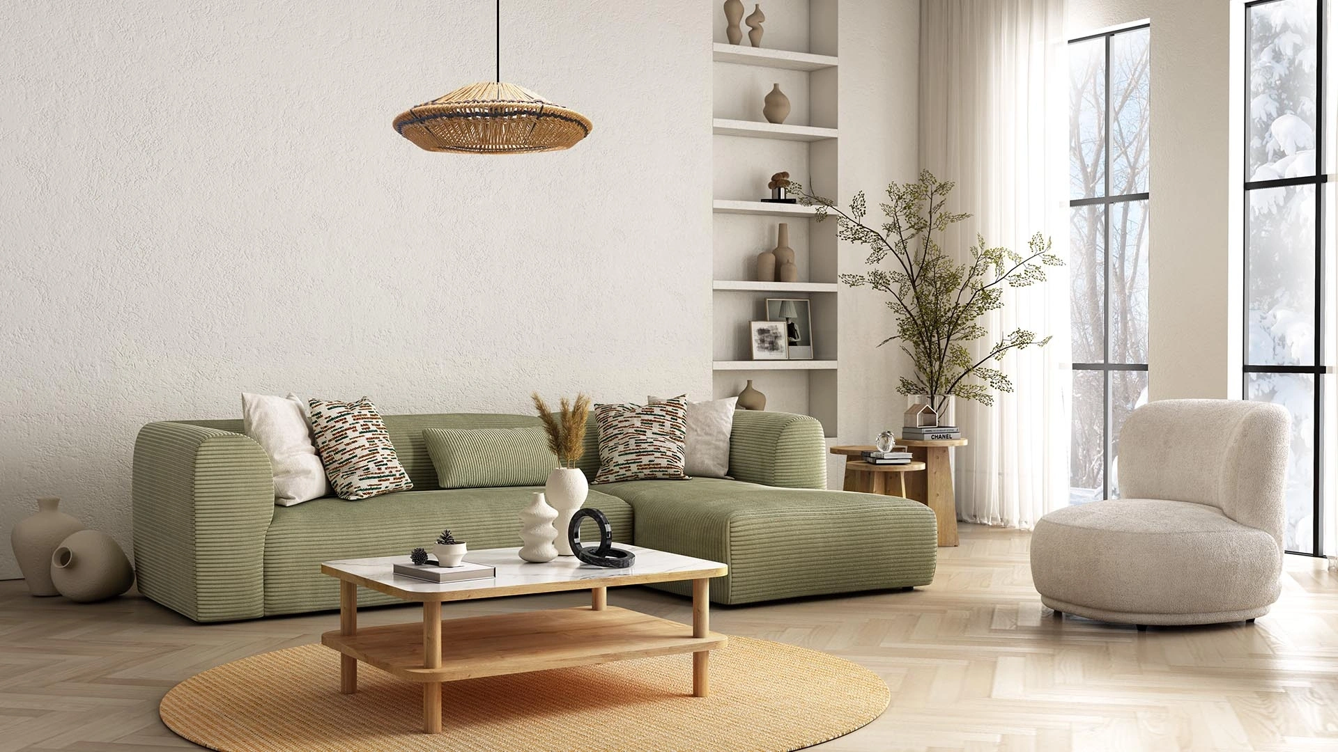 Soffice Köşe Koltuk Takımı, Kelebek’in butik ürünü olarak safir meşe ve mermer detaylarıyla zenginleştirilmiş, modern ve sıcak bir yaşam alanı sunar. Membran üretim yöntemi ile oluşturulan çıta detayları, İskandinav tasarım stilinin zamansız ve dinamik enerjisini yansıtırken, siyah metal kulplar ve mermer malzeme arasındaki kontrast ürüne zarif bir dokunuş katıyor. Oturum fontunda 35DNS sünger üzeri kuştüyü sünger, sırt ve kolçaklarda ise kuştüyü sünger kullanılmıştır. Ovalleştirilmiş köşeler ve yüksek ayak yapısı hem güvenlik hem de temizlik kolaylığı sağlar. Sağ ve sol köşe seçenekleri ile her mekana uyum sağlar. Yatak mekanizması ve sandık özelliği bulunmayan bu takım, derin ve yumuşak oturumu ile konfor odaklı bir üründür.