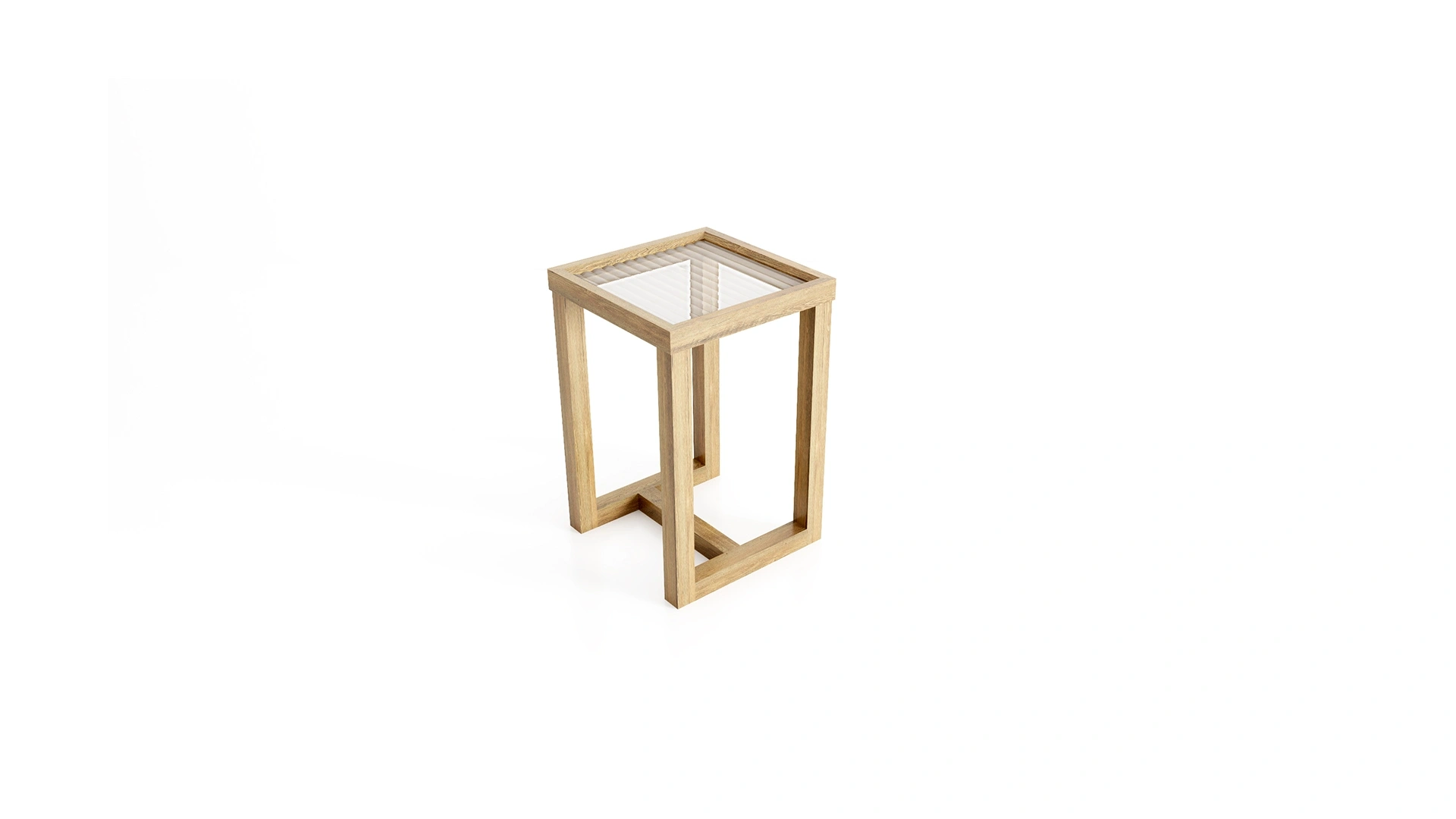Cam üst tablası ve masif ahşap ayaklarıyla etkileyici bir kontrast oluşturan Tetra Yan Sehpa, nervürlü camı sayesinde mekanı daha geniş gösterirken, ahşap ayakları ile samimi bir atmosfer yaratır.