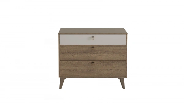 Doğadan ilham alınarak tasarlanan Viena Geniş Şifonyer, üç çekmeceli yapısı, geniş iç hacmiyle giysileriniz ve aksesuarlarınız için ekstra alan sağlıyor. Ceviz ve beyazın harika uyumunun, gold kulp detayıyla birleştiği Viena Geniş Şifonyer, yerden yükseltilmiş yapısıyla temizlik kolaylığı sağlıyor.