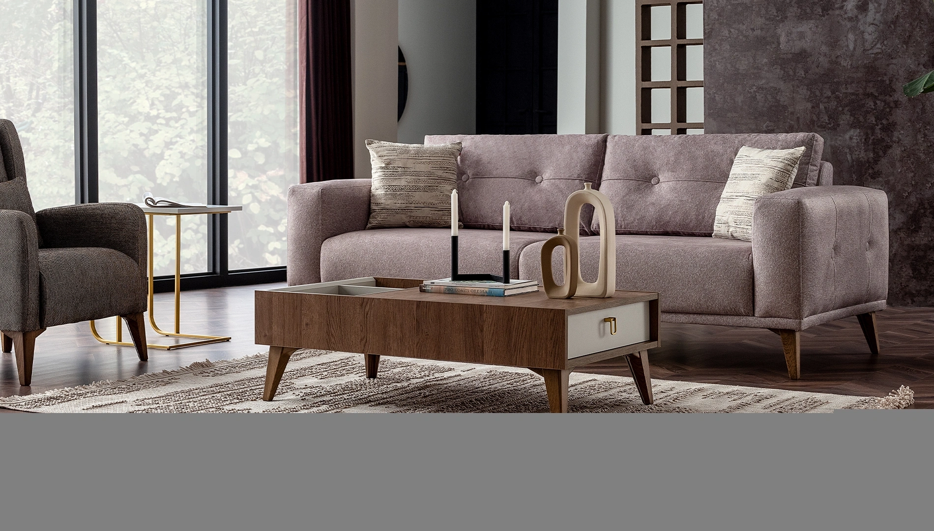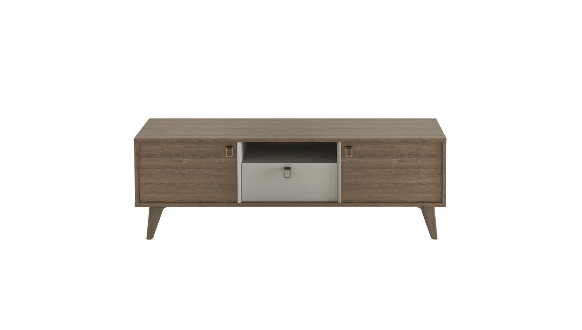 Ceviz renk yüzeyi ile sıcak bir duruş yakalayan Viena Tv Ünitesi, trend gri kombini ile oturma odalarınızda stilize bir atmosfer yaratıyor. Yalın tasarımı taçlandıran gold, deri detaylı kulplar ve dekoratif aynalarla yaşam alanlarınıza şıklıkla birlikte zarafeti sunarken seyir zevkini ise taçlandırıyor.